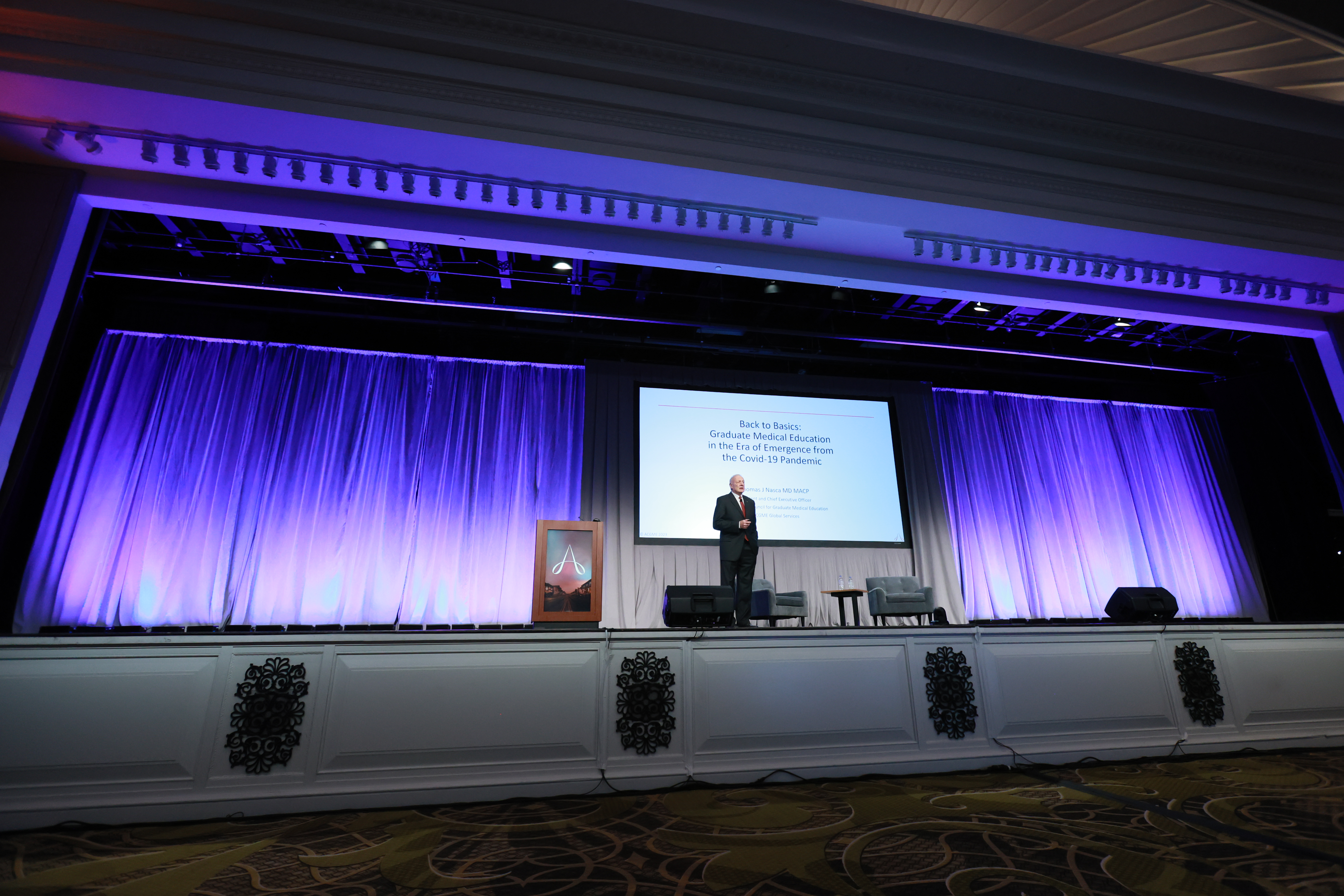 His talk explored the connection between undergraduate medical education (UME) and GME; revisited the three pandemics he discussed in his 2022 President’s Plenary; and offered a path forward from the COVID-19 pandemic to help residents and fellows strengthen their identities as physicians.