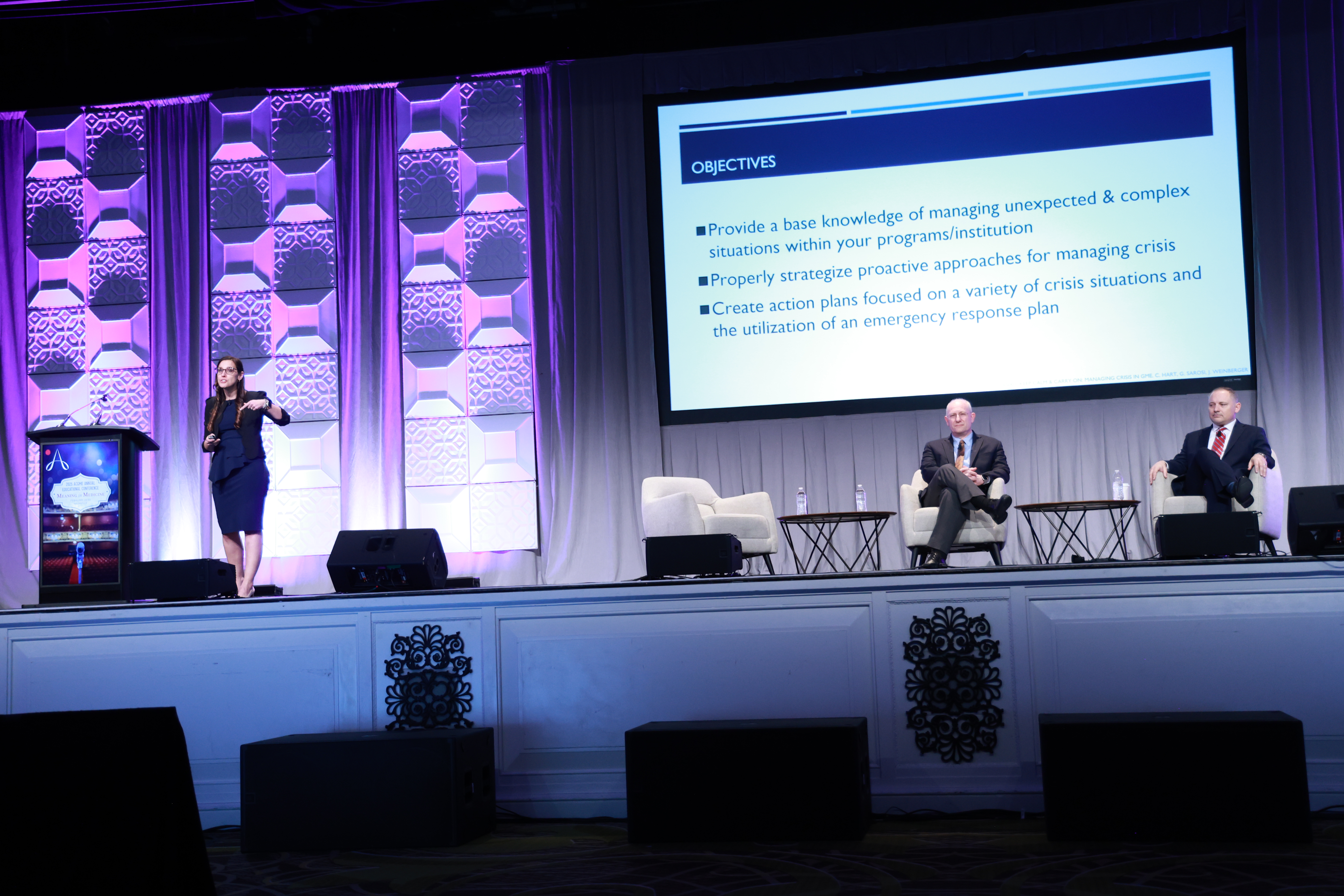 The graduate medical education (GME) community received practical, tangible solutions through candid, unscripted conversations in the 2025 Annual Educational Conference Featured Plenary entitled, “Keep Calm and Carry On: Managing Crisis in GME.” ACGME Chief Financial and Administrative Officer and Executive Vice President, ACGME Global Services John Ogunkeye, MBA moderated a panel of three experts who offered steps, strategies, and a toolkit for creating a crisis plan that stemmed from real-world examples they had faced at their own institutions.