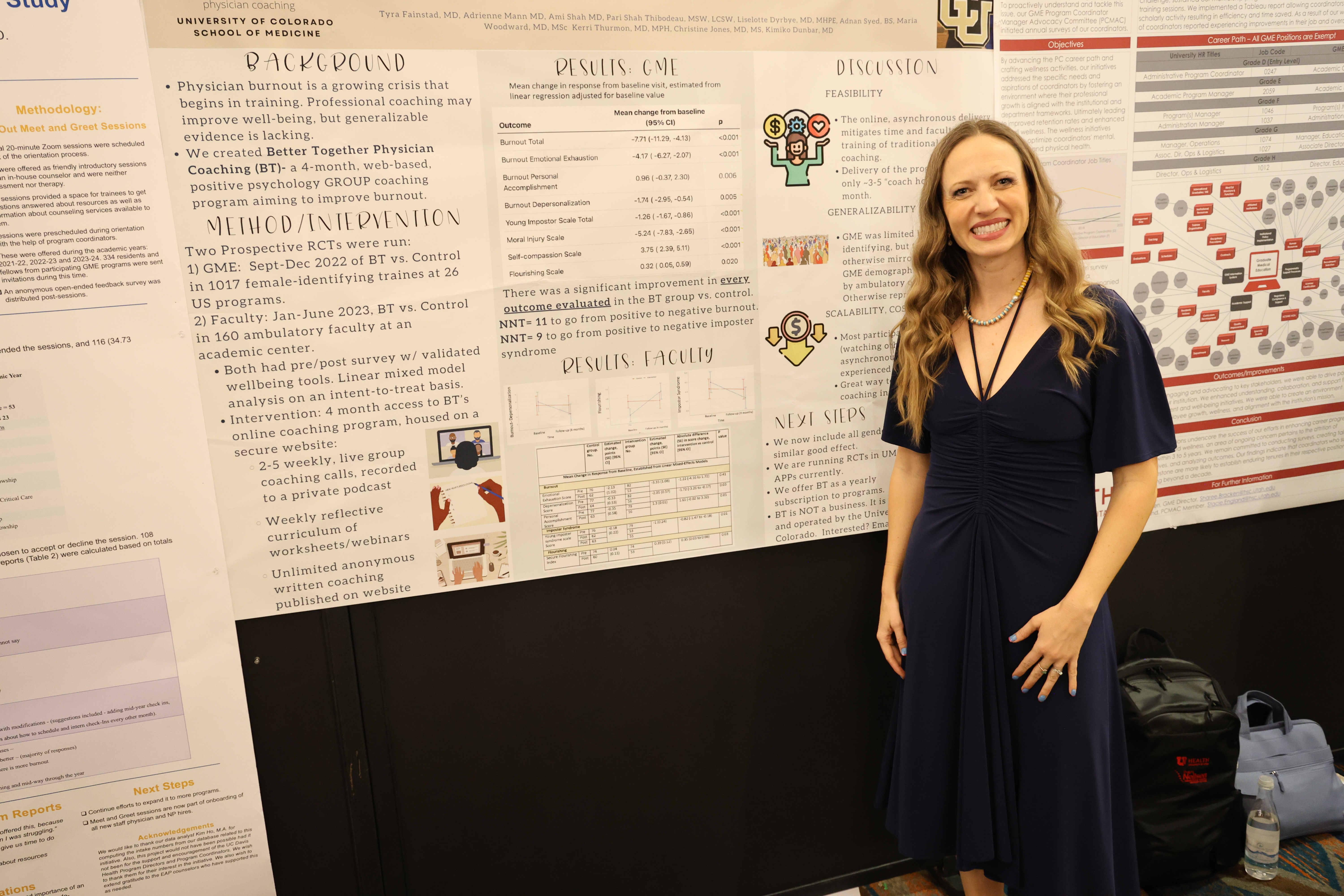 In the poster, “Online Well-Being Group Coaching Program for Physicians: Two Randomized Control Trials,” Tyra Fainstad, MD and her team describe two studies that looked to explore the impact of well-being group coaching on physicians and physician learners.
